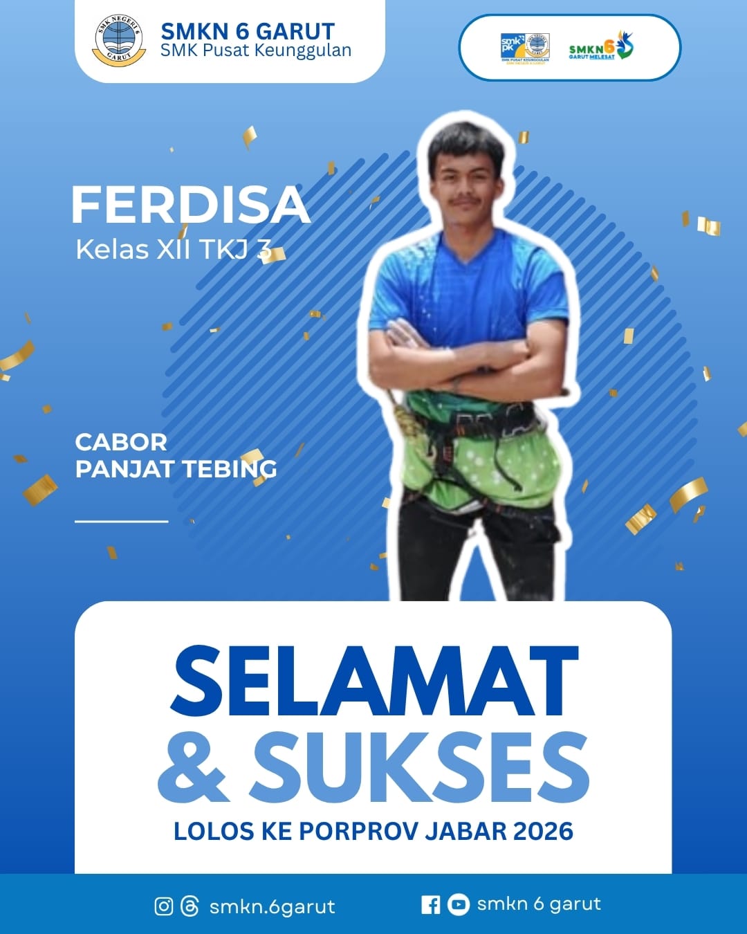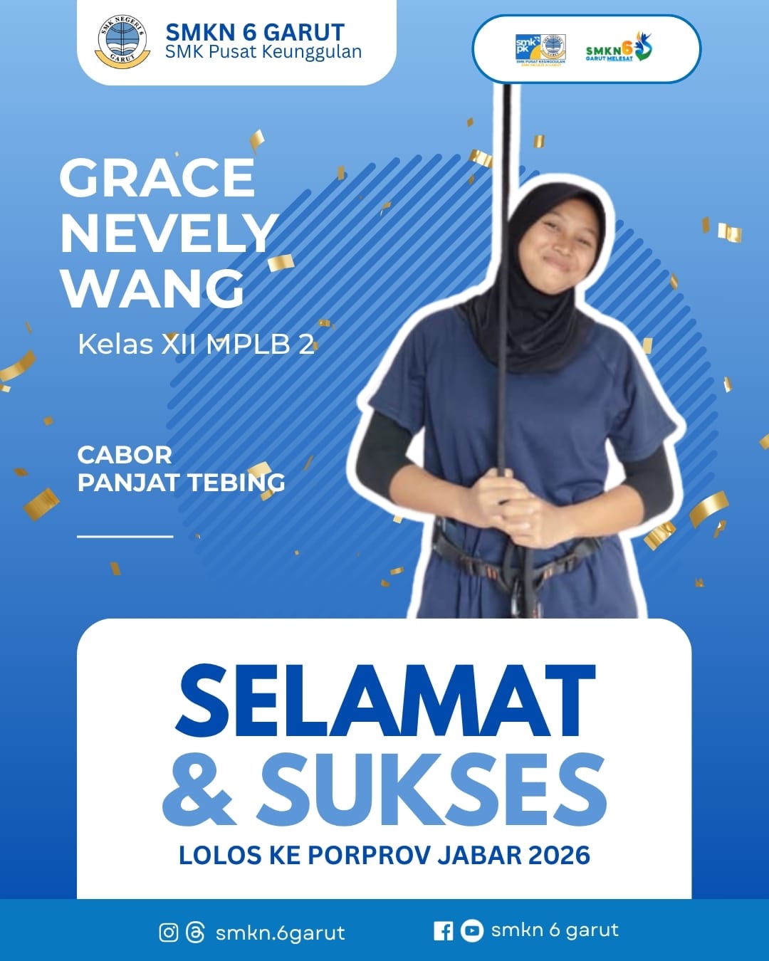 Ferdisa (Kelas XII TKJ 3) dan Grace Nevely Wang (Kelas XII MPLB 2) yang tergabung di FPTI Garut sukses lolos mewakili Kab.Garut dalam ajang Porprov Jabar 2026 cabor panjat tebing.