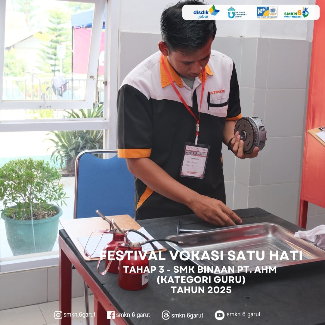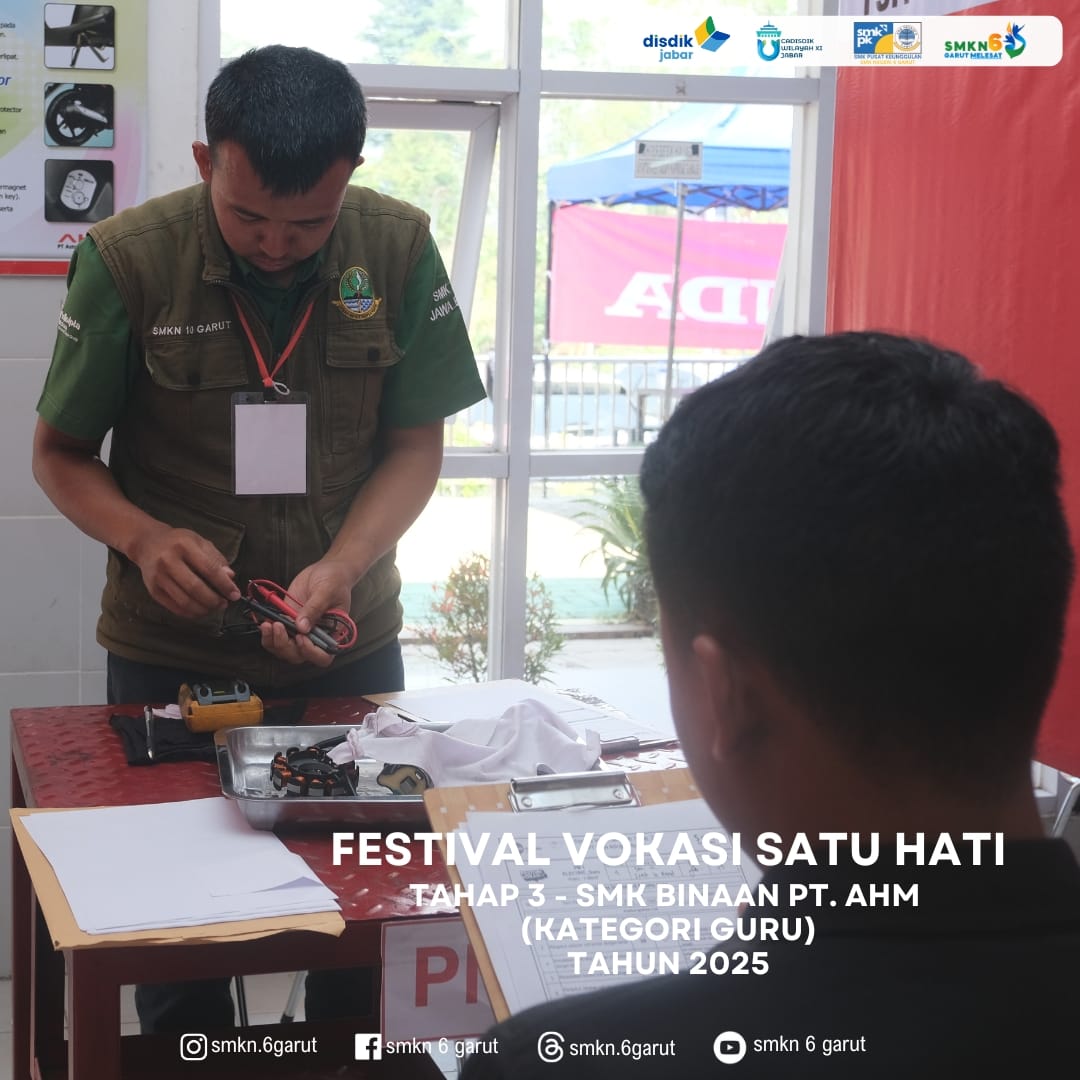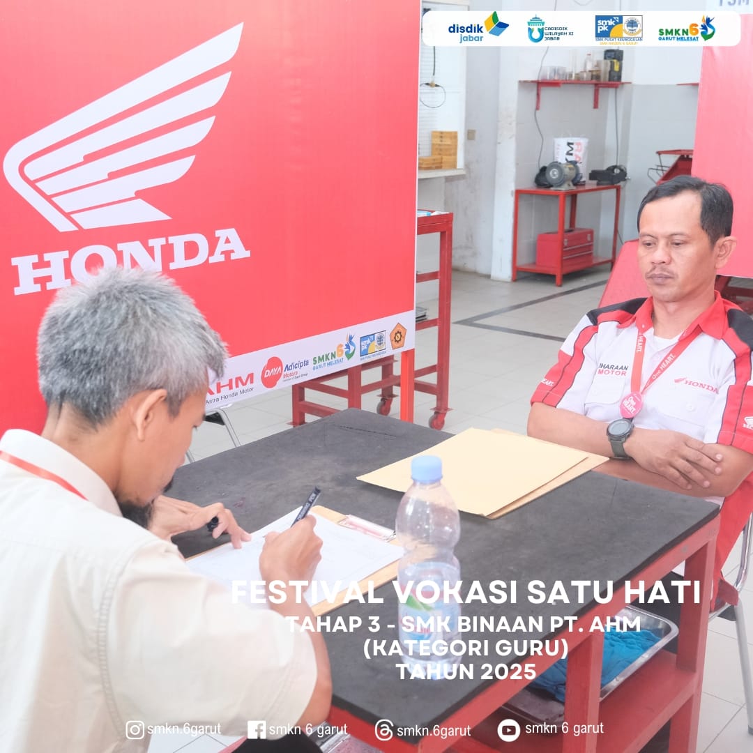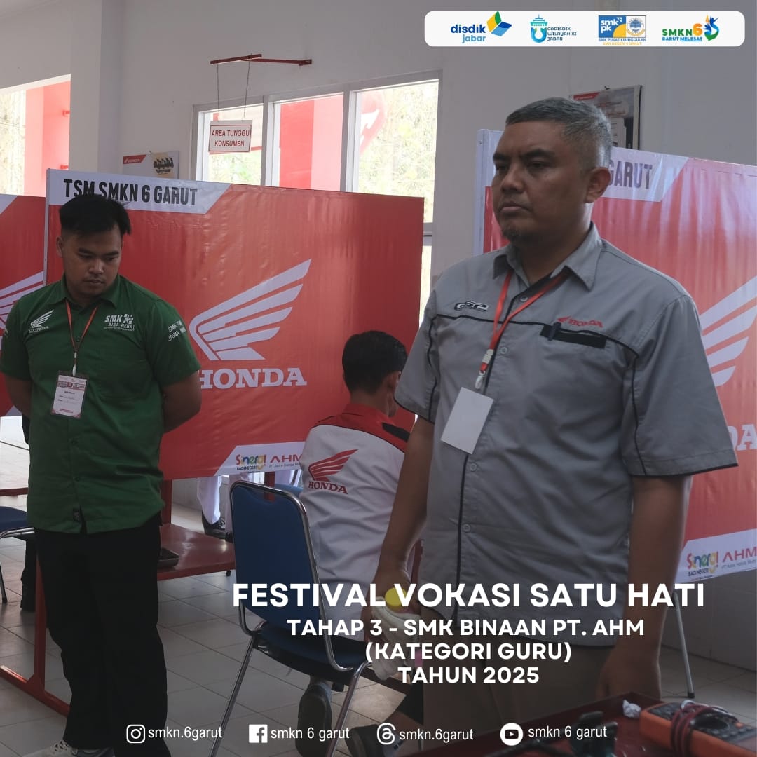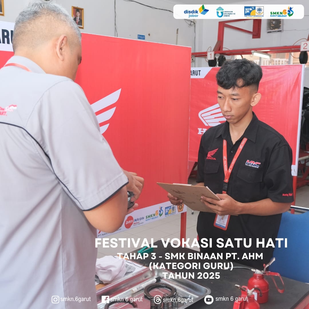 SMKN 6 Garut menjadi tempat pelaksanaan kegiatan Festival Vokasi Satu Hati Tahap – 3 (Wilayah Timur) kategori Guru & siswa SMK Binaan PT. Astra Honda Motor.