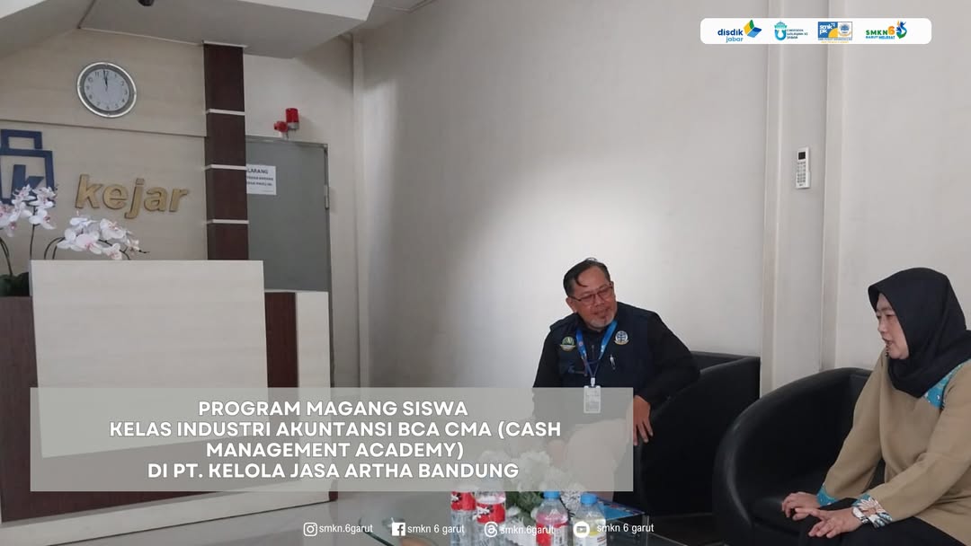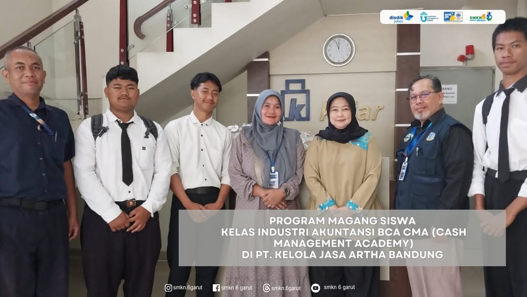 Kelas industri Akuntansi BCA CMA, merupakan salah satu program link & match unggulan Konsentrasi Keahlian Akuntansi SMKN 6 Garut. Kelas industri Akuntansi BCA CMA (Cash Management Academy), merupakan program pendidikan yang diselenggarakan oleh BCA bekerja sama dengan Sekolah Menengah Kejuruan (SMK) untuk mempersiapkan siswa agar siap kerja di industri pengolahan uang tunai, seperti Cash Processing Center (CPC). Program ini memberikan pengetahuan praktis dan keterampilan yang dibutuhkan industri, termasuk pemahaman tentang pengelolaan kas, pengoperasian mesin, dan standar keamanan. Salah satu kegiatan utama program ini adalah program magang siswa di industri rekanan program BCA CMA. Program magang siswa di tahun ini diselenggarakan di PT. Kelola Jasa Artha Bandung, dengan periode magang dari tanggal 04 September 2025 sampai dengan 04 Maret 2026. Adapun peserta magang siswa adalah : 1. Evan Hermawan (XII Akl 2) 2. Dikdik Agustin (XII Akl 1) Semangaat !!!!